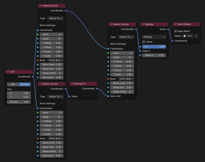 Plugging noise nodes into other noise nodes creates extra complicated noises
